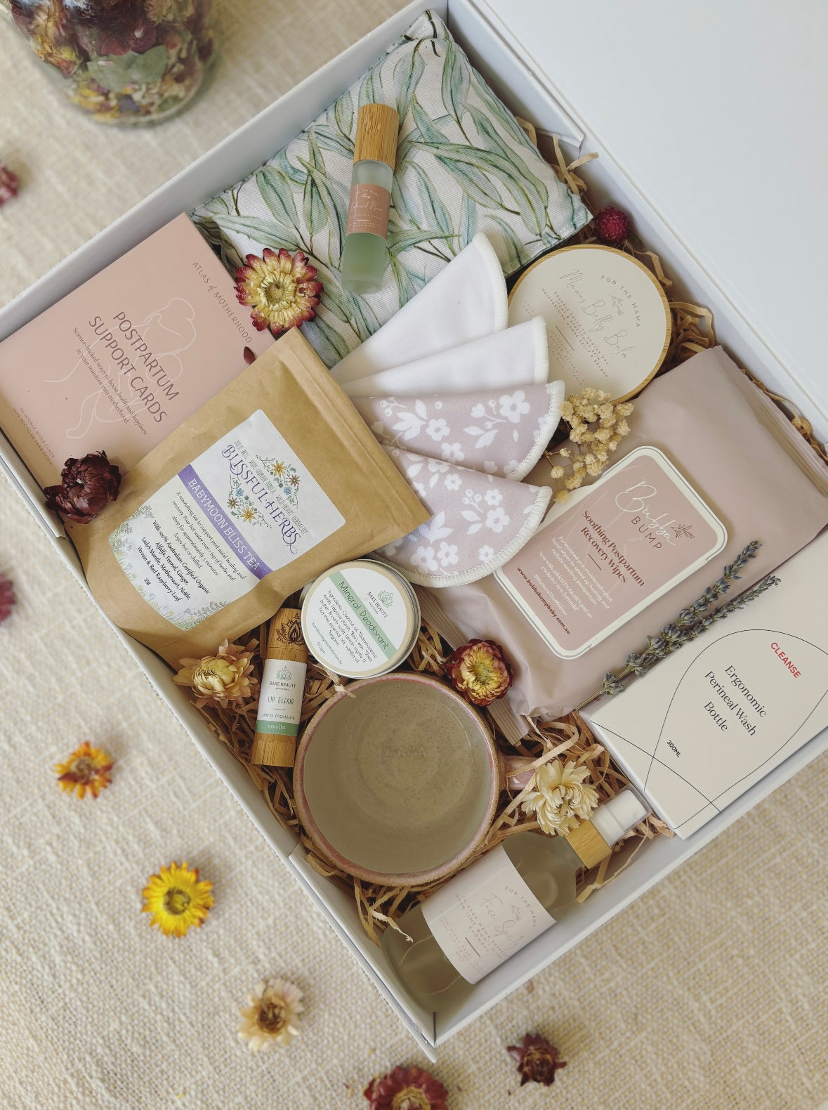 "I was gifted a postpartum box in January by a friend. It was such a lovely gift to nurture myself with after a hard pregnancy. Thanks Brooke".